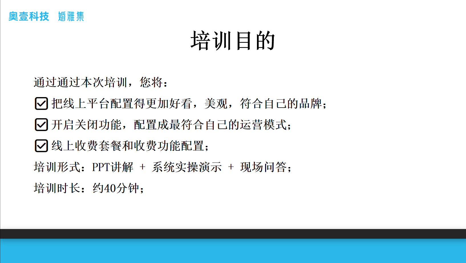 首页 / 系列课 / 婚企云系统培训第2课-线上平台功能配置